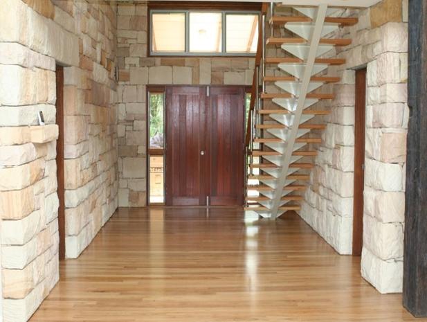 Foyer featuring random block hand cut sandstone freestanding walls