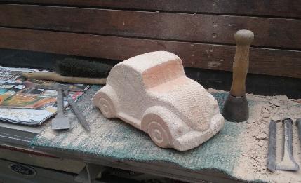 | Below recently completed Volkswagen Beetle. Commission in Sandstone measuring approx 16 inches long. |