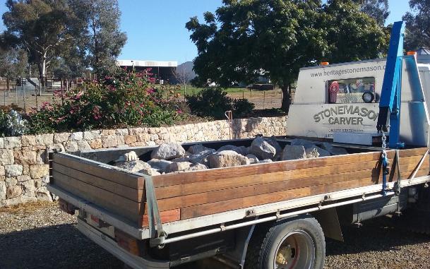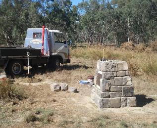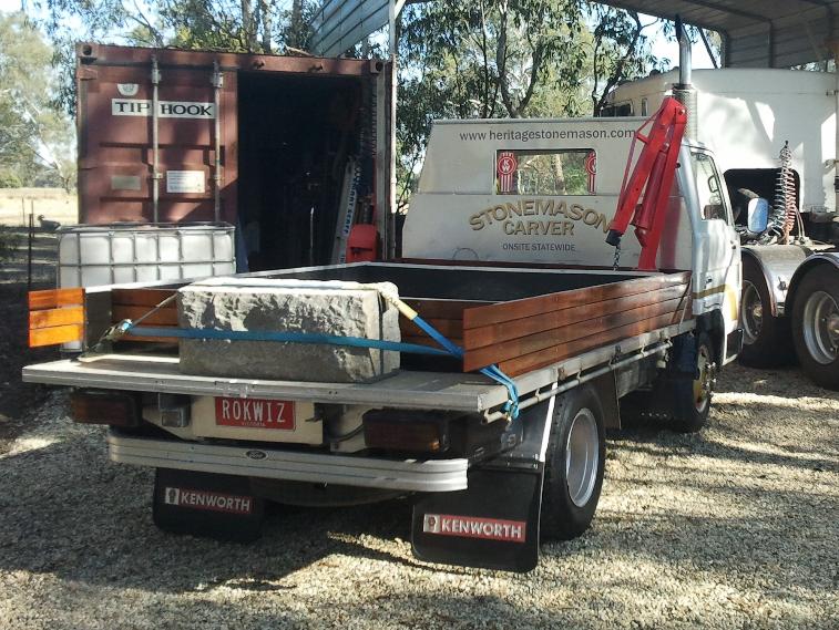 Below.... Hand loading 2 tons of Glenrowan granite destined to become a fireplace or drystone entranceway |